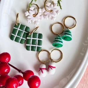 Prepárate para destacar esta temporada navideña con los hermosos zarcillos en forma de árbol de Navidad, elaborados 100% a mano con arcilla polimérica y una encantadora base en forma de lazo. Estos accesorios no solo son perfectos para complementar tu look festivo, sino que también representan la pasión y el esmero que solo el trabajo artesanal puede ofrecer. Su diseño único y detallado convierte a estos zarcillos en el centro de atención de cualquier reunión navideña.